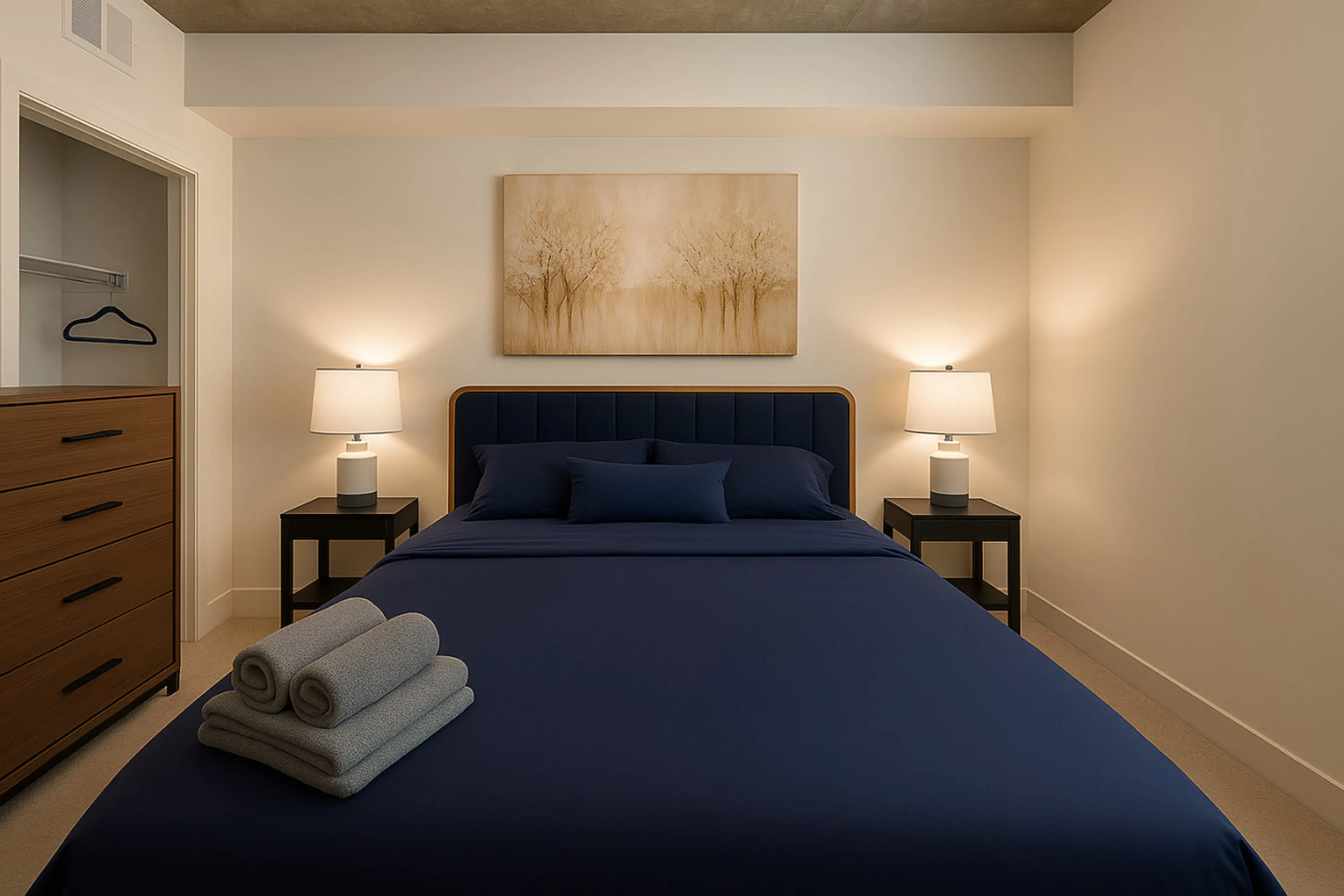 Unwind in this stylish 3-bedroom condo, perfectly situated in downtown Birmingham. Enjoy abundant natural light and stunning city vistas through expansive windows. The open-concept living area provides a relaxed ambiance with comfortable seating and a smart TV, complementing the effortlessly sleek k...