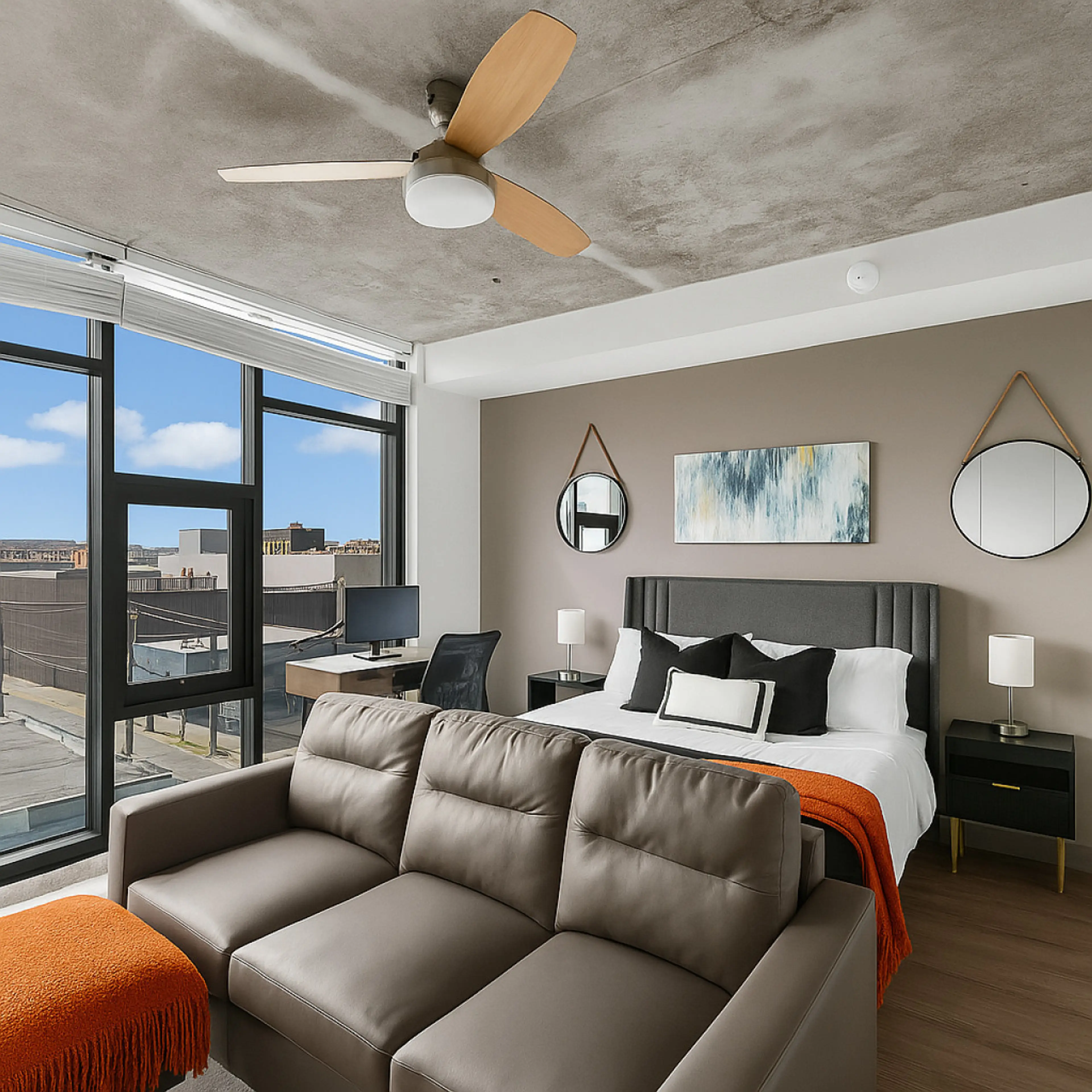 Unwind in this stylish Studio, perfectly situated in downtown Birmingham. Enjoy abundant natural light and stunning city vistas through expansive windows. The open-concept living area provides a relaxed ambiance with comfortable seating and a smart TV, complementing the effortlessly sleek kitchen. H...