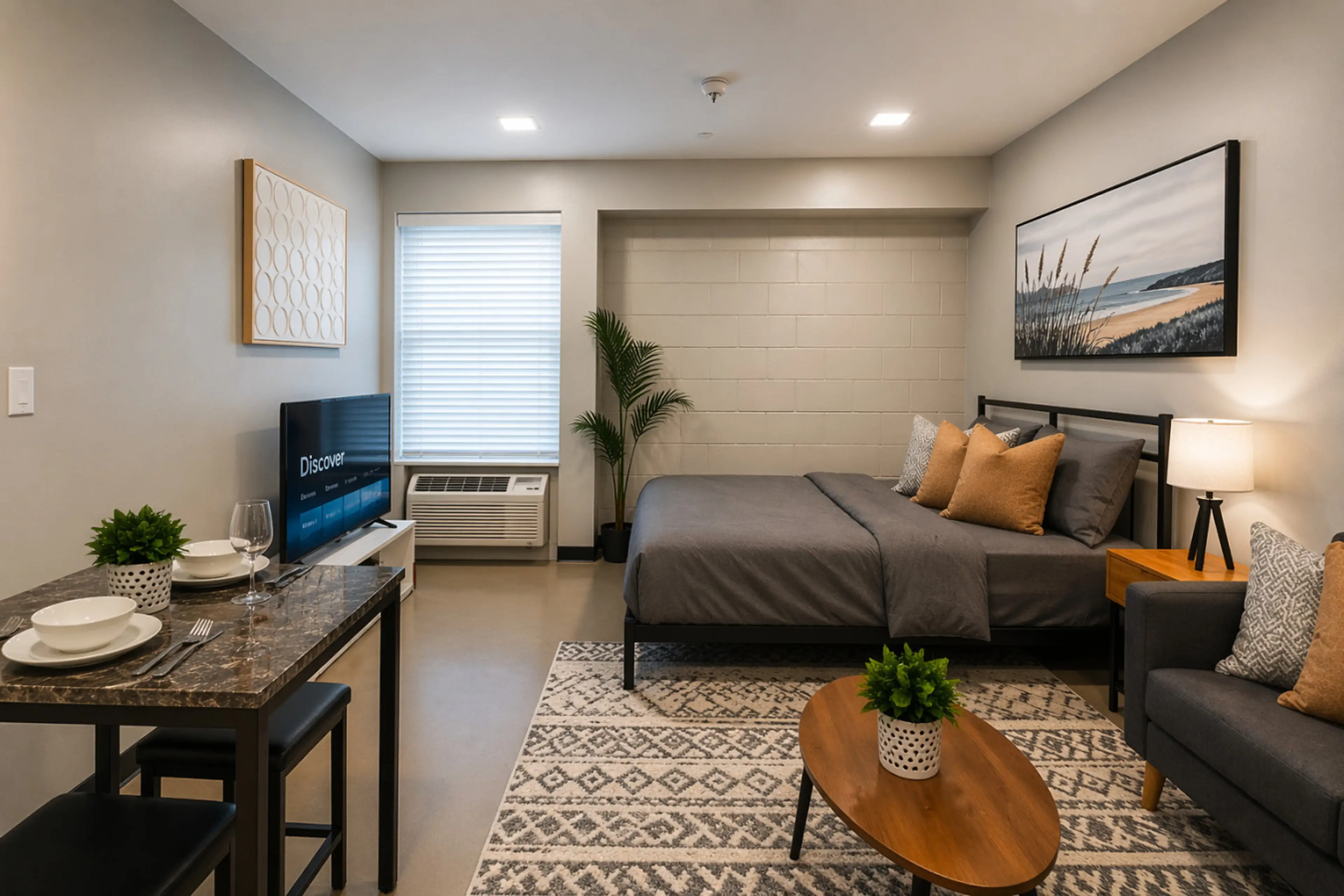 Make yourself at home in this stylish studio in Birmingham’s vibrant Five Points South. Thoughtfully designed for comfort, it features a modern open layout, cozy furnishings, and a fully equipped kitchenette. Perfect for solo travelers, couples, or professionals, with dining, entertainment, and down...
